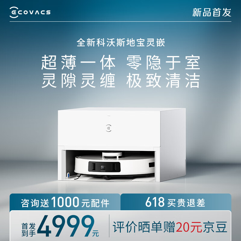 科沃斯新品【灵嵌】扫地机器人扫拖一体超薄嵌入式全自动智能清洁打扫卫生神器自动上下水价格:4999.00元!