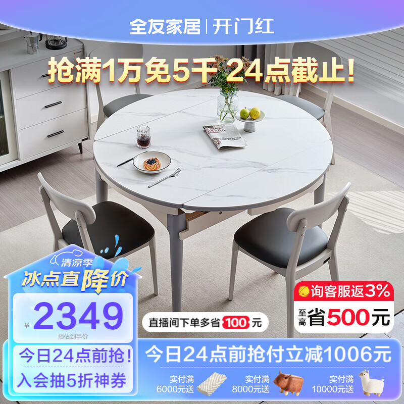全友家居 餐桌现代简约岩板餐桌椅可圆可方折叠款餐厅吃饭桌子DW1028K价格:3355.71元!