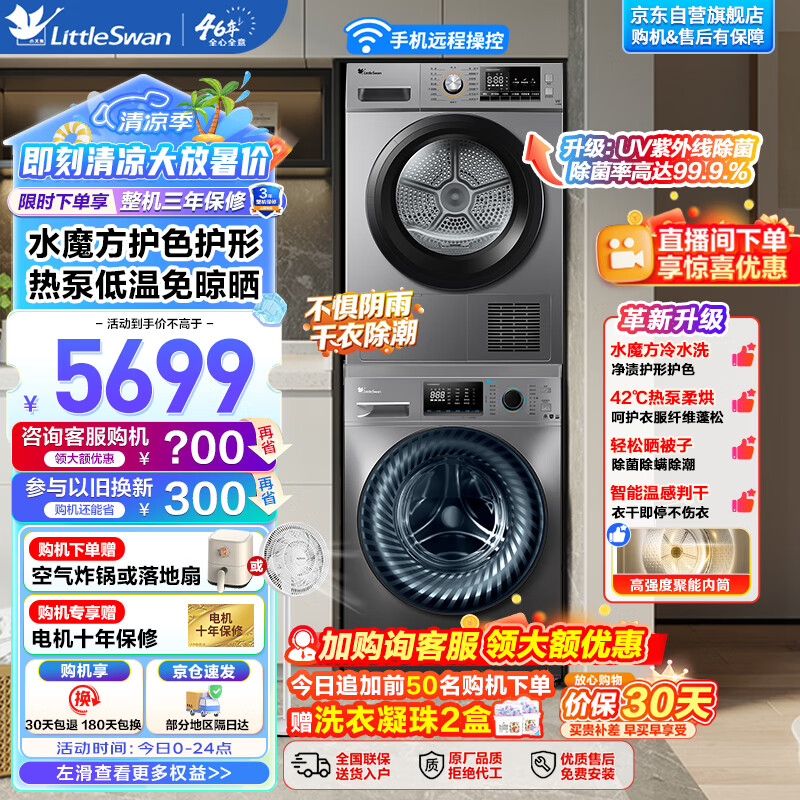 小天鹅(LittleSwan)V868洗烘套装 10kg滚筒洗衣机全自动+热泵烘干机 水魔方除菌除螨 以旧换新 868+032WY价格:5699.00元!