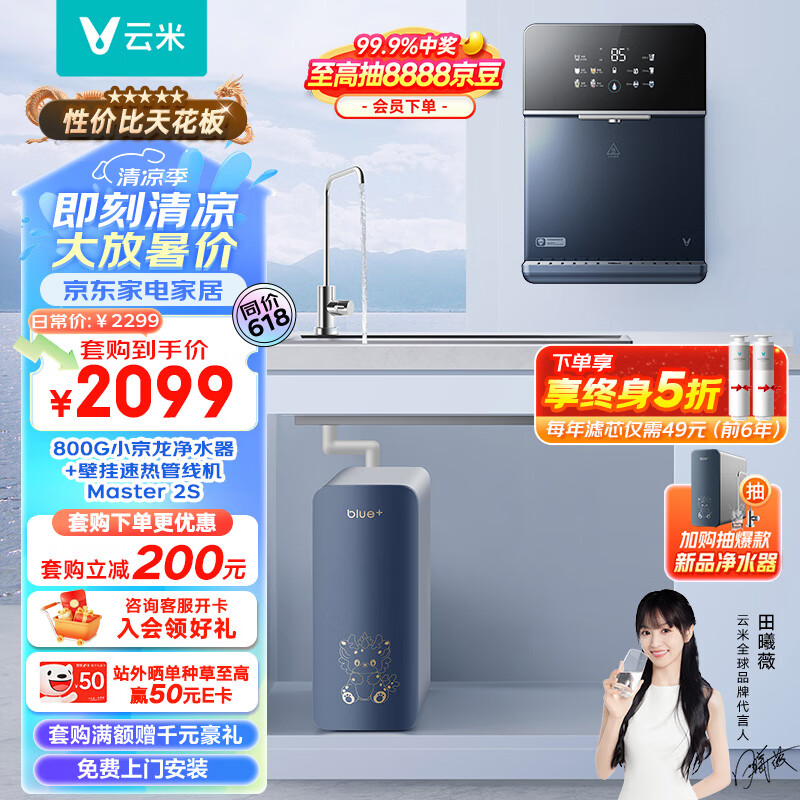 云米(VIOMI)净水器小京龙800G家用+管线机Master 2S两件套家用直饮加热即热净水器净水机价格:2299.00元!