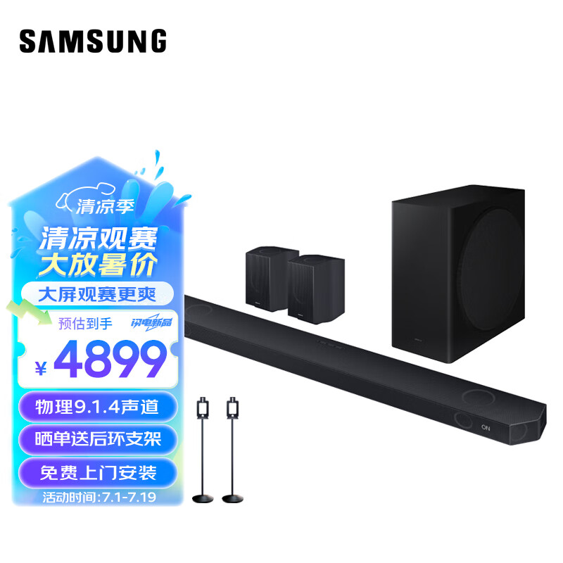 三星(SAMSUNG)Q930C 9.1.4杜比全景声 DTS-X回音壁 soundbar 家庭影院 天空声道 无线环绕 电视音响价格:4899.00元!