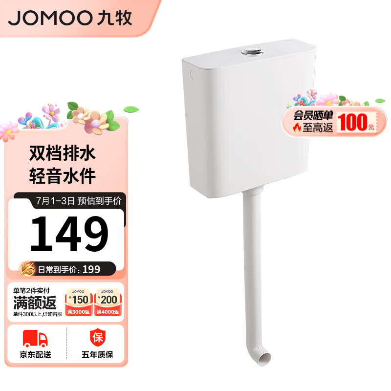 九牧 JOMOO卫生间家用水箱厕所配件节水大冲力按键双档速冲95027-01-3价格:149.00元!