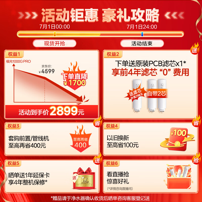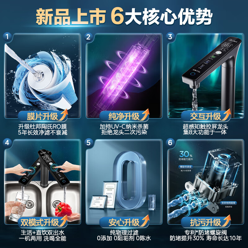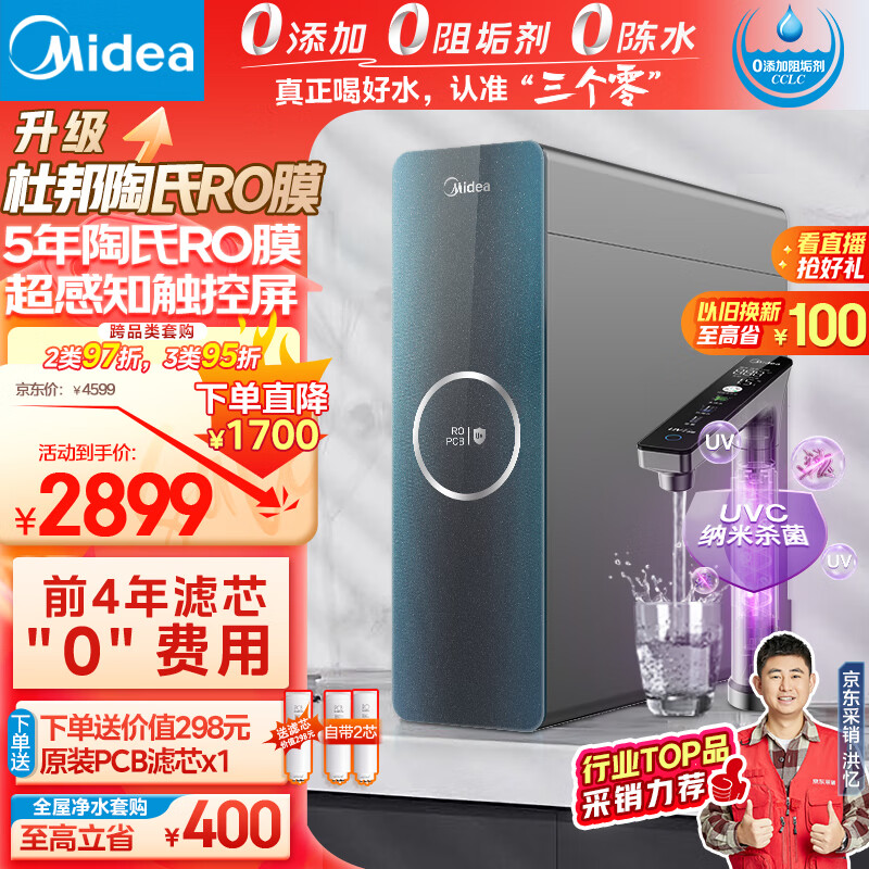 美的(Midea)净水器家用净水机极光1000G Pro直饮机 5年陶氏RO膜反渗透厨下式净水器 星河升级UV杀菌 双出水价格:2899.00元!