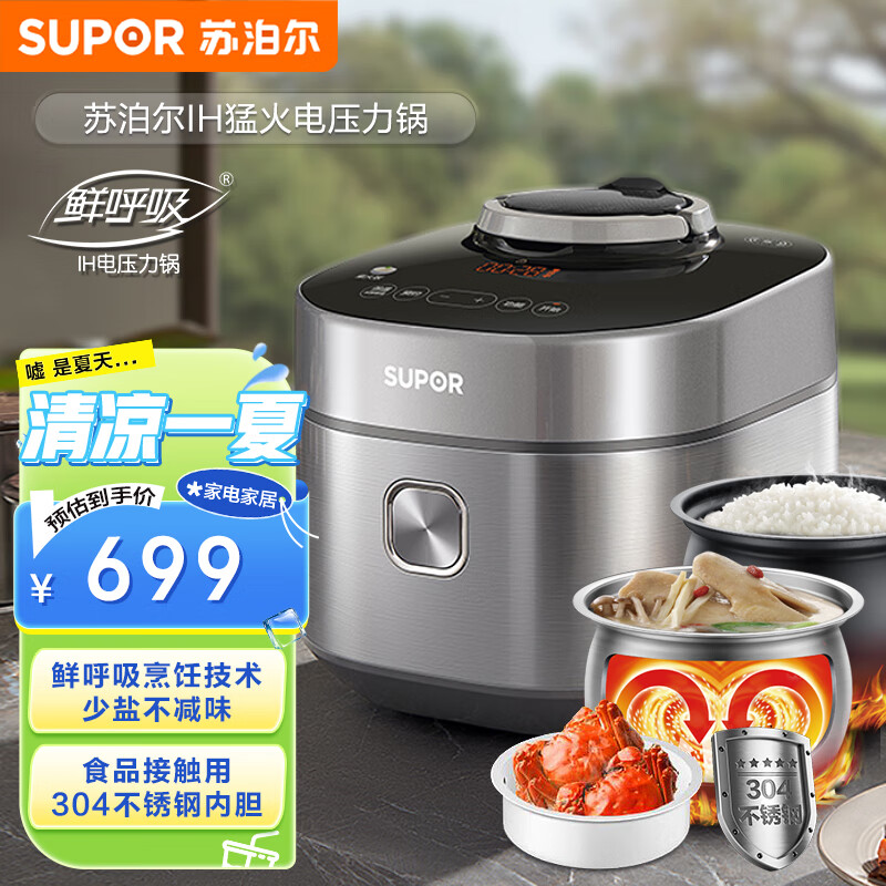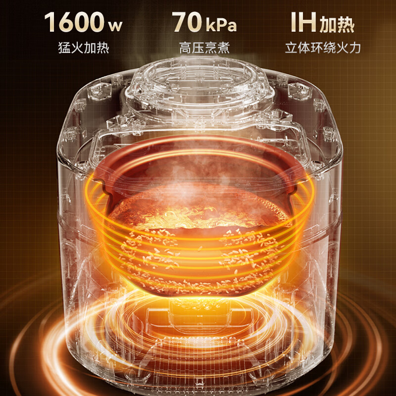 苏泊尔鲜呼吸系列电锅3L IH猛火 精钢球釜 家用双胆 网红菜谱顶置彩屏触控电饭煲高压锅SY-30FH8018Q价格:699.00元!