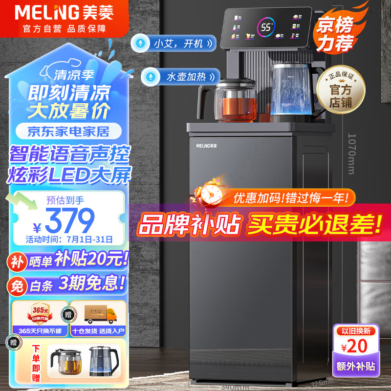 美菱(MeiLing)茶吧机家用高端智能语音遥控立式饮水机下置水桶一体柜家用办公全自动机温热款MY-C912(语音款)价格:429.00元!