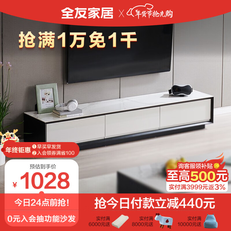 全友家居 电视柜大小户型岩板收纳储物柜子现代客厅家具DW1055价格:1468.57元!