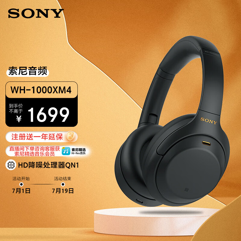 索尼(SONY)WH-1000XM4 无线智能降噪 头戴蓝牙耳机 蓝牙5.0(1000XM3升级款)黑色 适用于苹果/安卓系统价格:1699.00元!