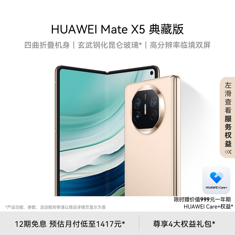 华为(HUAWEI) Mate X5 典藏版 折叠屏手机 16GB+1TB 羽砂金价格:16999.00元!