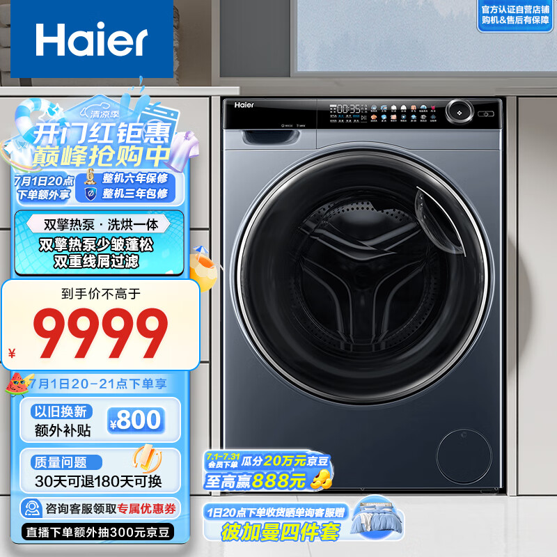 海尔(Haier)滚筒洗衣机全自动 热泵洗烘一体机【直驱精华洗XHG13L96U1】以旧换新 一级能效 内衣洗价格:9999.00元!