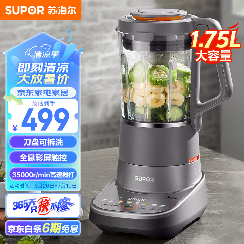 苏泊尔(SUPOR)破壁机低音降噪多功能家用豆浆机1.75L大容量榨汁机全自动可拆洗预约料理机 SP907R价格:499.00元!