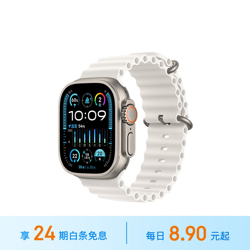 Apple【24期免息】Watch Ultra2智能手表 GPS+蜂窝款49毫米钛金属表壳白色海洋表带MRF93CH/A价格:6499.00元!