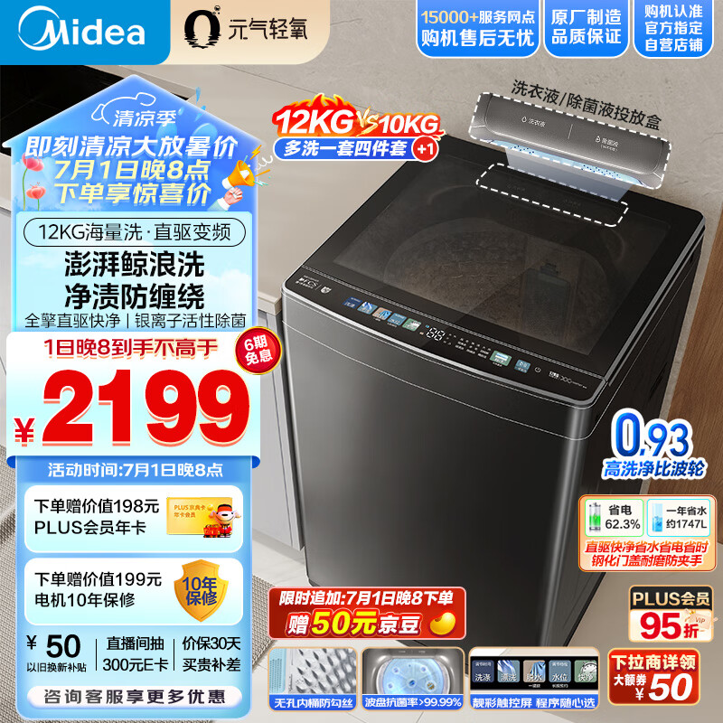 美的(Midea)波轮洗衣机全自动 元气轻氧系列 12公斤 直驱变频 银离子活性除菌 健康除螨 MB120AIR3价格:2199.00元!