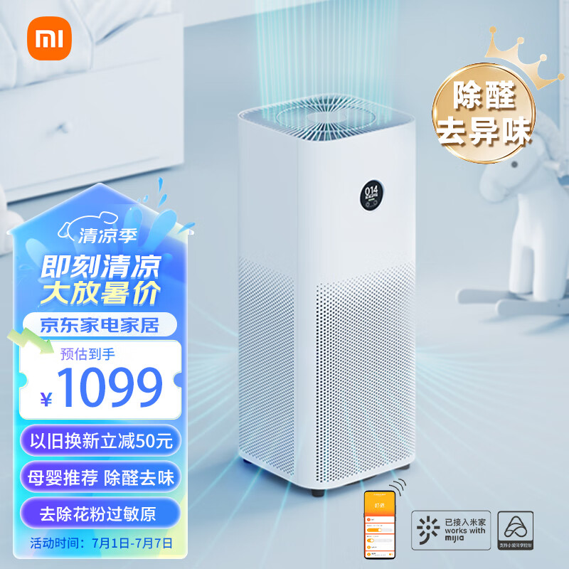 米家 小米空气净化器4Pro 除甲醛除菌除异味 负离子空气伴侣 低噪设计 经典升级价格:1099.00元!
