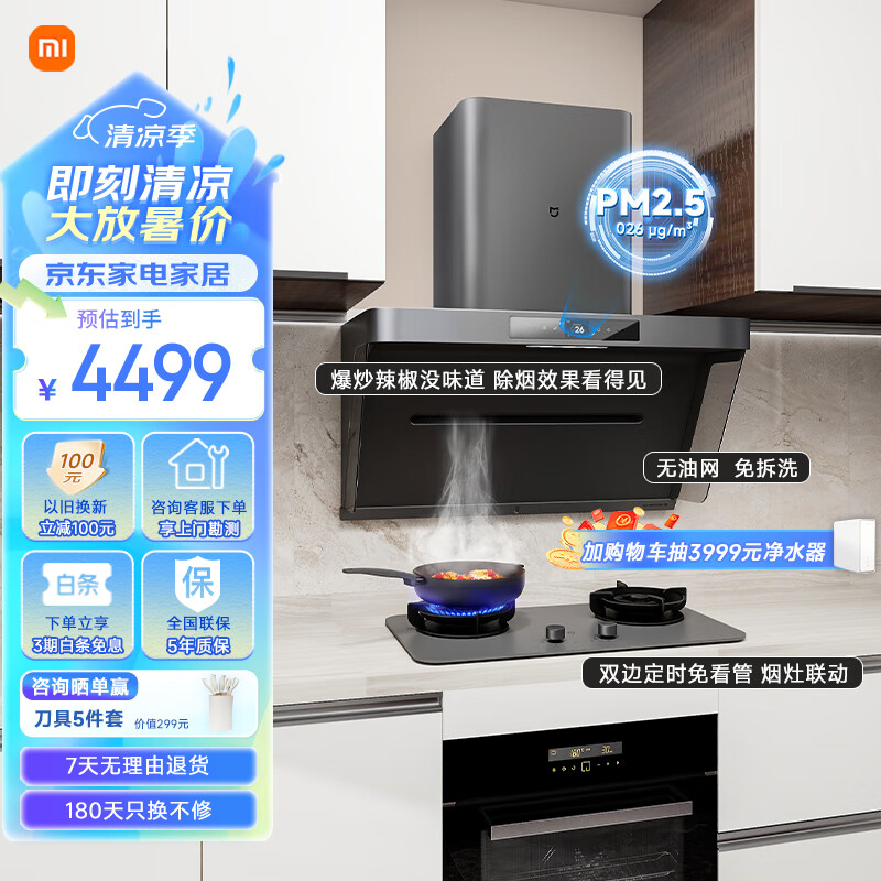 米家小米净烟机P1抽油烟机烟灶套装 智能净味吸油烟机 免拆洗家用变频油烟机燃气灶MJ04CY(液化气)价格:4499.00元!