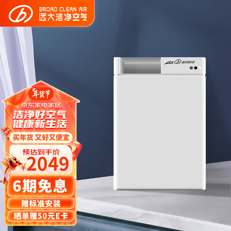远大(BROAD)新风系统家用壁挂式新风机 双向流通风换气全热回收 除雾霾除甲醛 京东小家智能生态FF100-Pro价格:2049.00元!