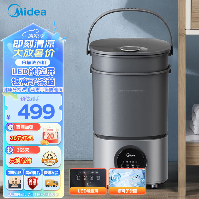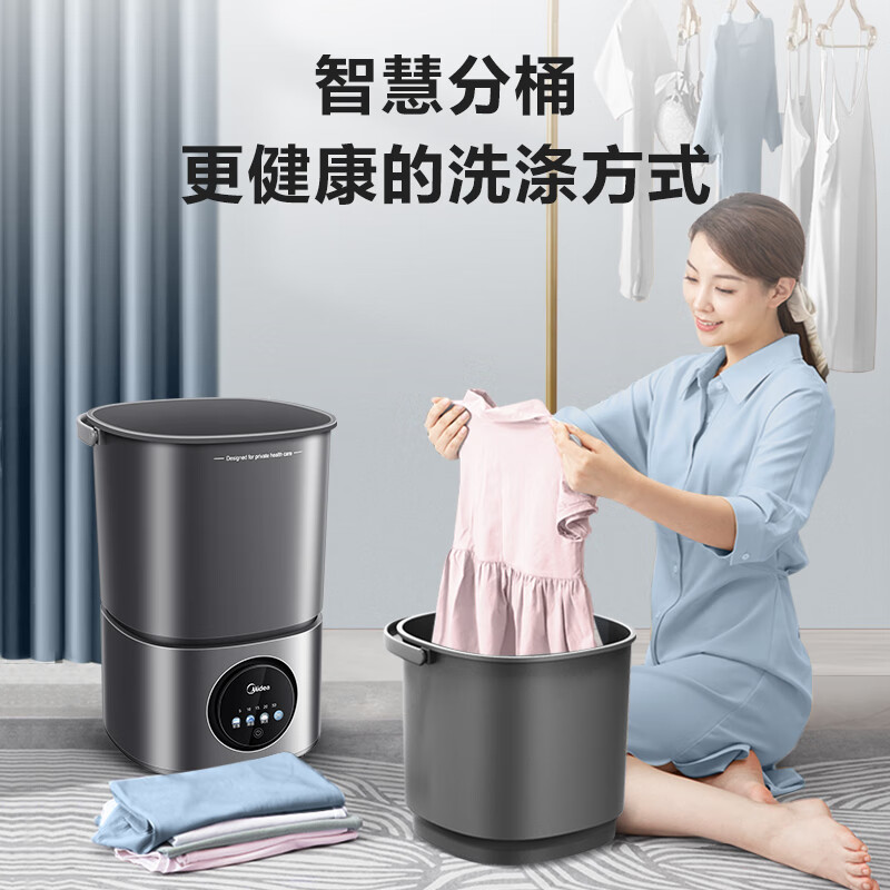 美的(Midea)内衣内裤分桶洗衣机便携式婴儿童衣服清洗机1.5KG触控迷你洗袜子神器(一机二桶) MFB15-32S价格:499.00元!