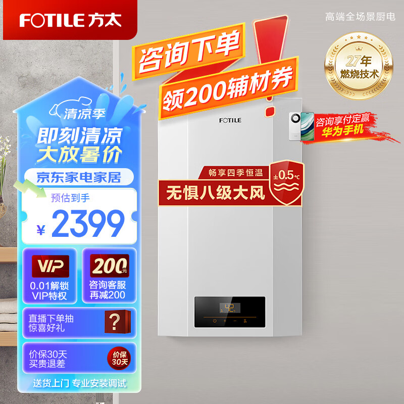 方太天然气16升燃气热水器 家用强排式 智能变频恒温 银离子抗菌低水压启动 高层抗风系列 JSQ30-P16D1价格:2399.00元!