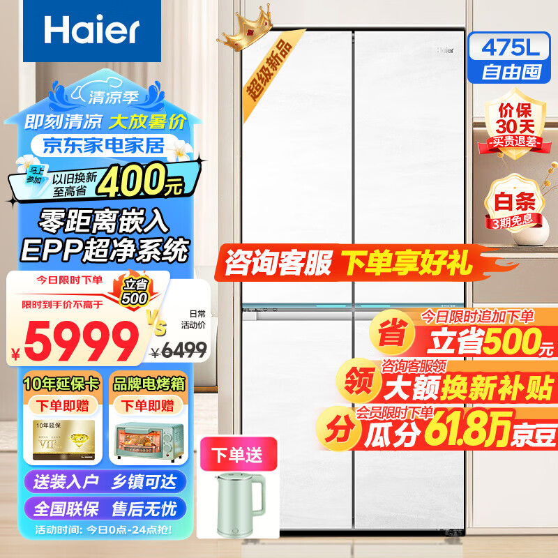海尔(Haier)475升和景系列 全空间保鲜 594mm专业超薄零嵌入式 十字对开门四开门冰箱 一级能效风冷无霜家用价格:6199.00元!