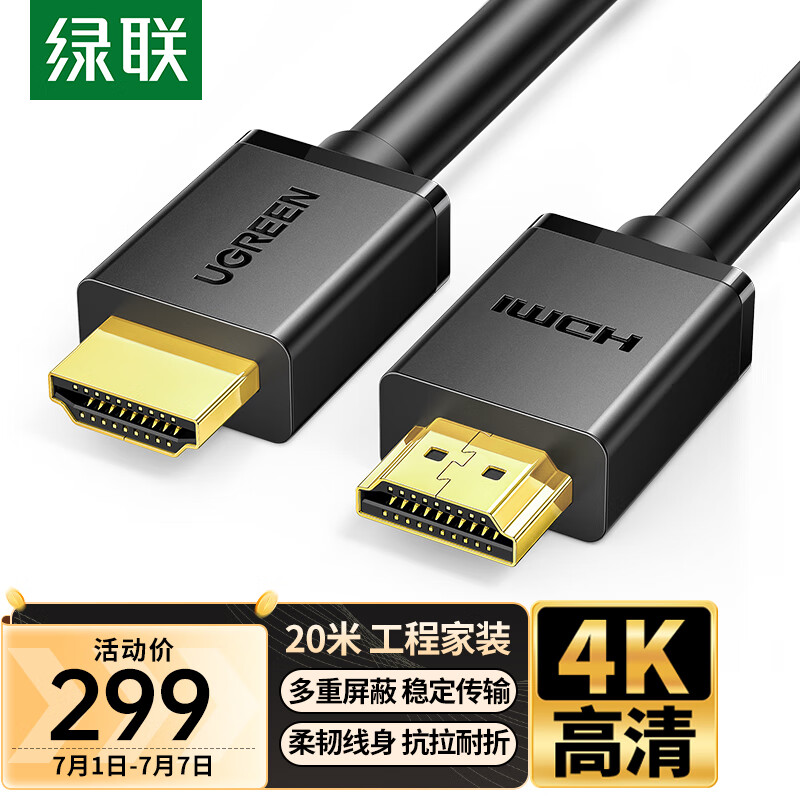 绿联HDMI线数字高清线 HDMI工程线 3D视频线 笔记本电脑机顶盒接电视投影仪显示器数据连接线 20米价格:328.00元!