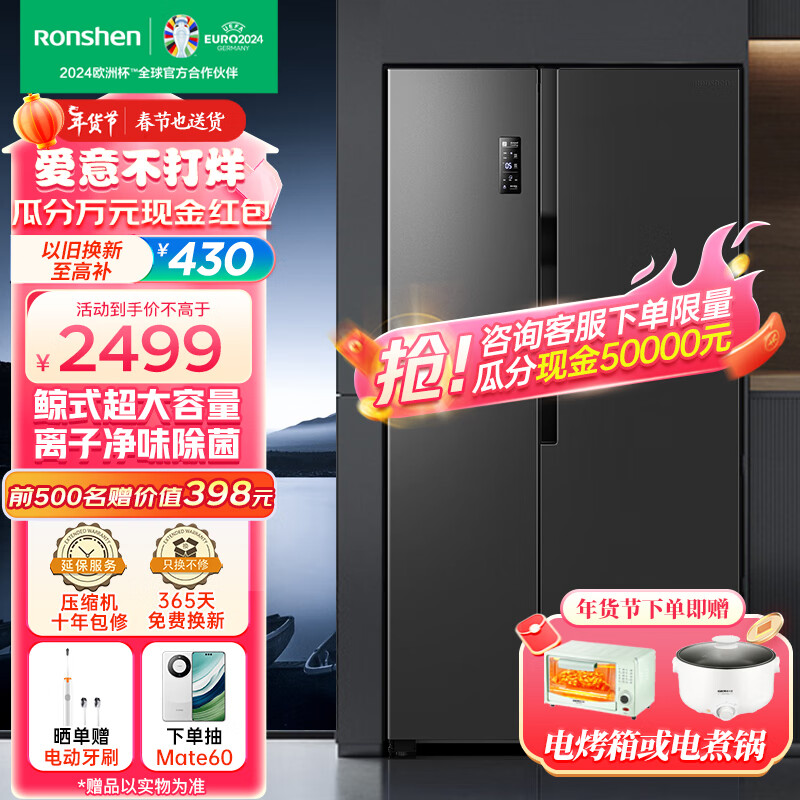 容声(Ronshen)冰箱双开门对开门605升大容量一级能效风冷无霜CCA离子除菌净味600Plus升级款电冰箱BCD-605WD11HP价格:2599.00元!