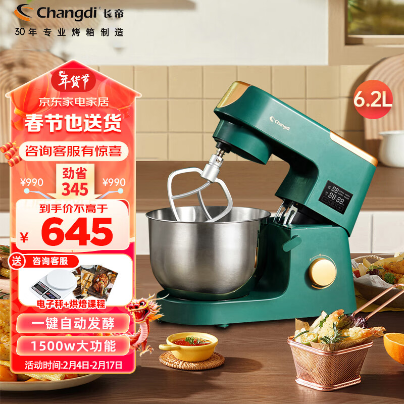 长帝(changdi)家用和面机厨师机 6.2L大容量 自动低温发酵 多功能揉面机面包机 1500W大功率价格:645.00元!