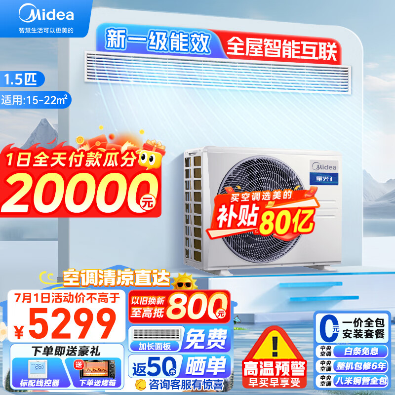 美的(Midea)中央空调风管机一拖一1.5匹一级能效家用嵌入式变频冷暖星光科技版KFR-35T2W/B3DN1-XG(1)Ⅲ价格:5399.00元!