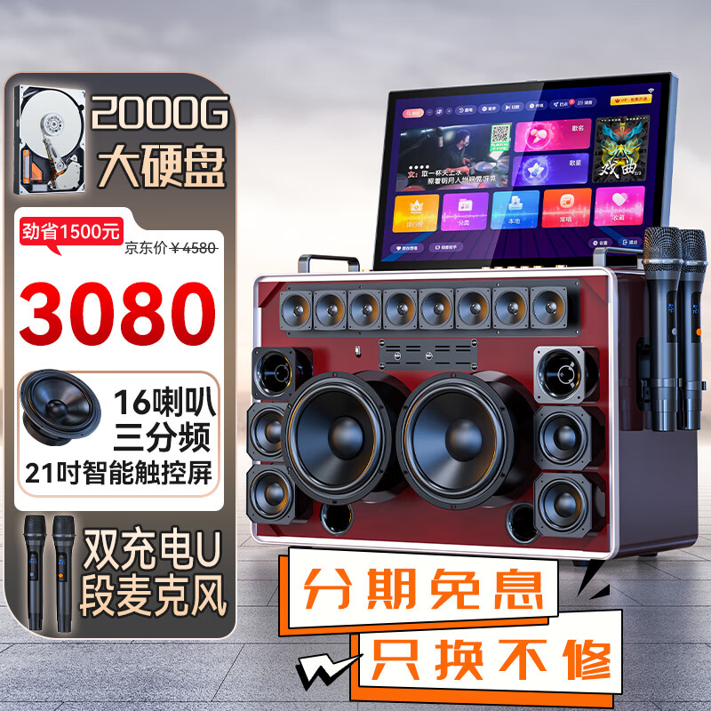山水K93家庭ktv音响套装便携户外广场舞音响带显示屏家用移动k歌音箱点歌机触摸屏一体机卡拉ok机2T价格:3080.00元!