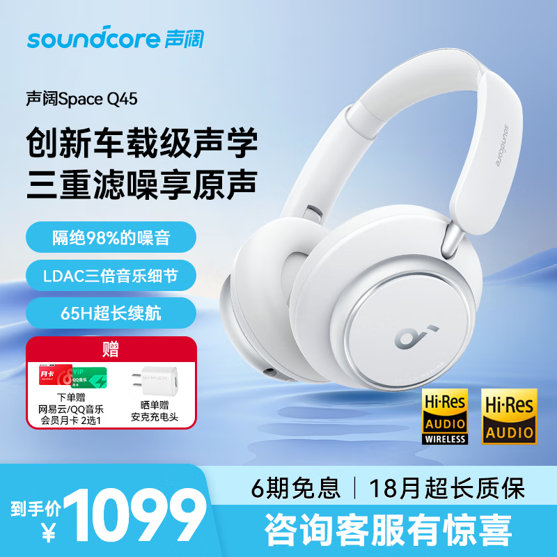声阔Soundcore Space Q45声阔头戴式无线蓝牙耳机三重动态滤噪适用苹果/华为手机白色价格:1099.00元!