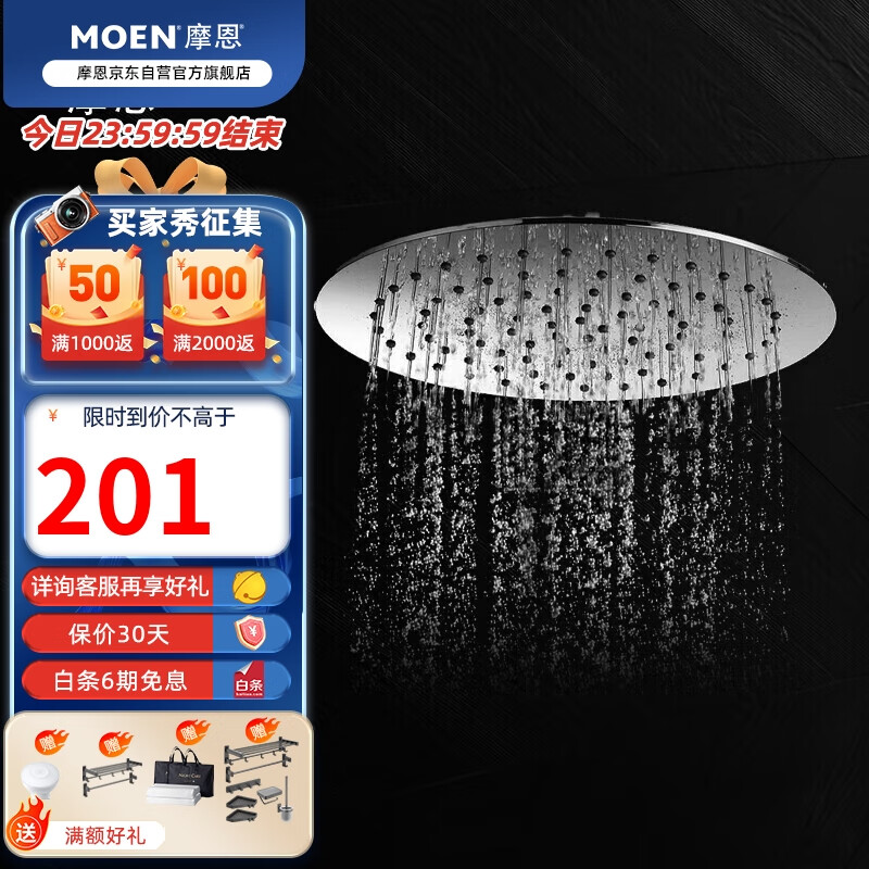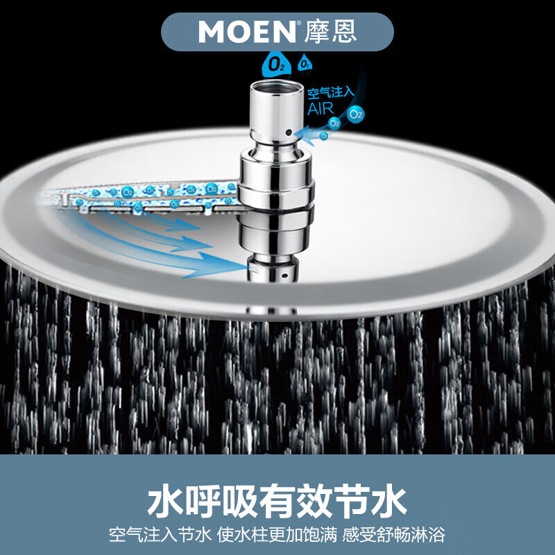 摩恩(MOEN)空气注入增压节水花洒喷头 9寸230mmABS顶喷淋浴花洒淋浴器M22033价格:201.00元!