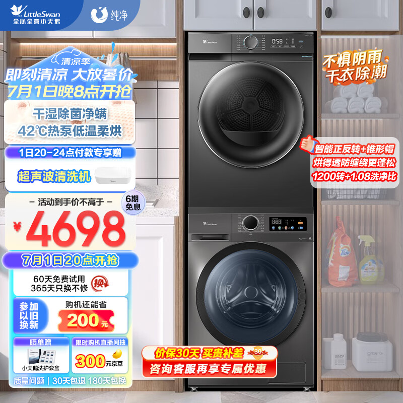 小天鹅(LittleSwan)洗烘套装 10KG滚筒洗衣机全自动+热泵烘干机家用 除菌净螨除潮 毛屑过滤 TG100APURE+02价格:4698.00元!