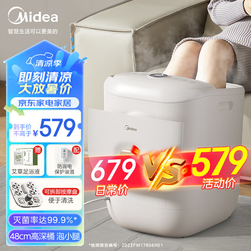 美的(Midea)泡脚桶杀菌足浴盆全自动按摩洗脚盆智能高深桶家用生日礼物 送父母长辈礼物ZL2暖阳白价格:579.00元!
