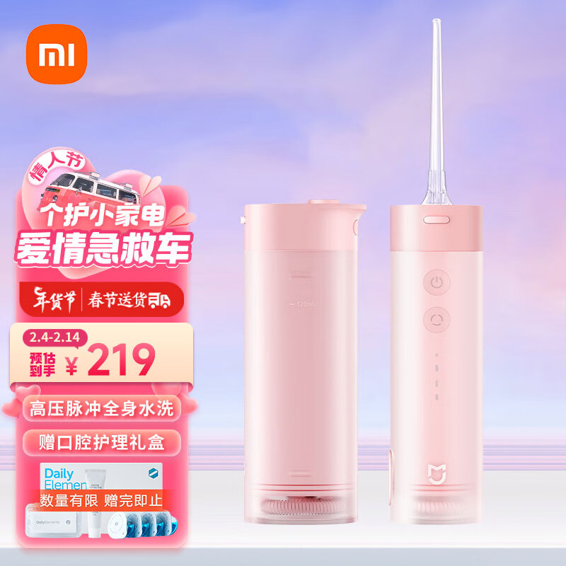 米家 小米便携式冲牙器洗牙器清洁口腔 高压脉冲全身水洗 60天长续航 樱花粉 情人节礼物推荐价格:219.00元!