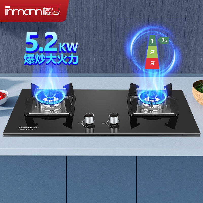 樱曼 燃气灶 煤气灶 双灶 家用台式/嵌入式 一级能效5.2KW 大火力猛火爆炒灶具 JZY-121AB01(液化气)价格:329.00元!
