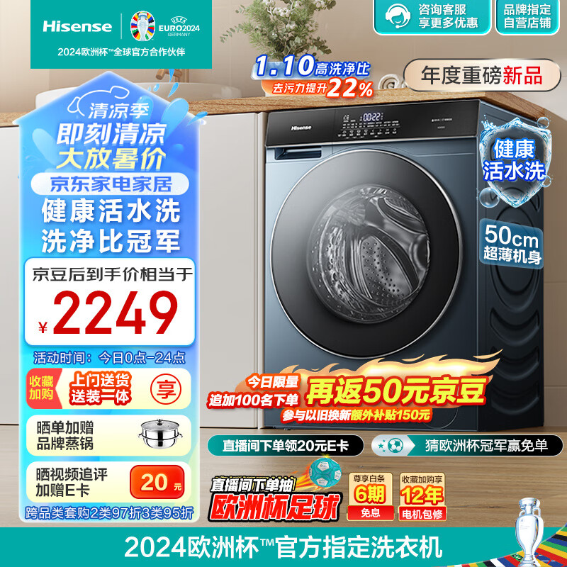 海信(Hisense)滚筒洗衣机全自动 10公斤洗烘一体 新品 超薄智能双投放 1.10高洗净比 活水洗2.0 HD10SE5价格:2299.00元!