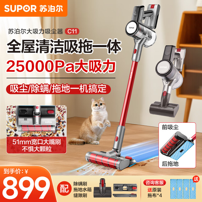 苏泊尔 SUPOR 手持无线吸尘器家用洗地机除螨拖地机吸拖一体机 宠物家庭适用VCS63X-C11价格:999.00元!