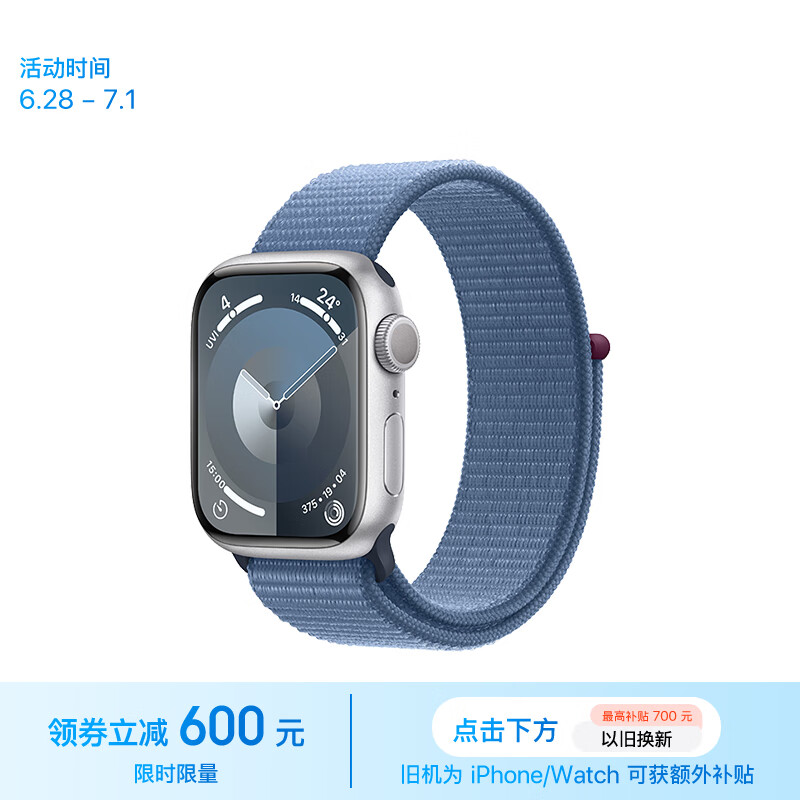 Apple/苹果 Watch Series 9 智能手表GPS款41毫米银色铝金属表壳 凛蓝色回环式运动表带 MR923CH/A价格:2999.00元!