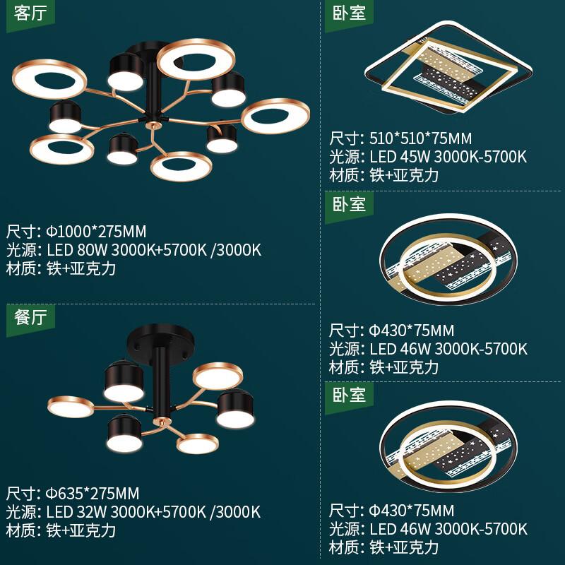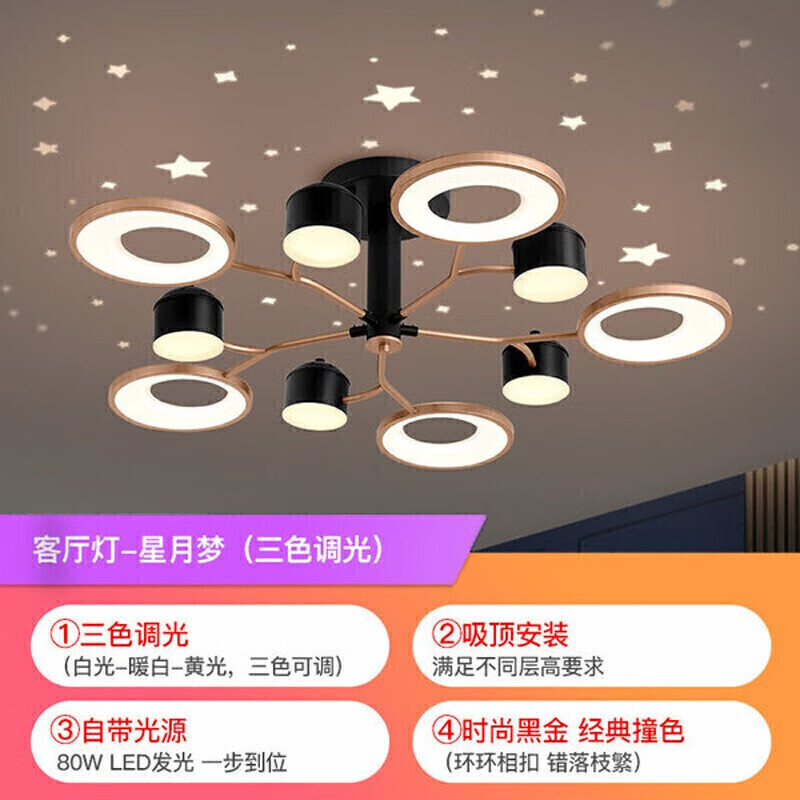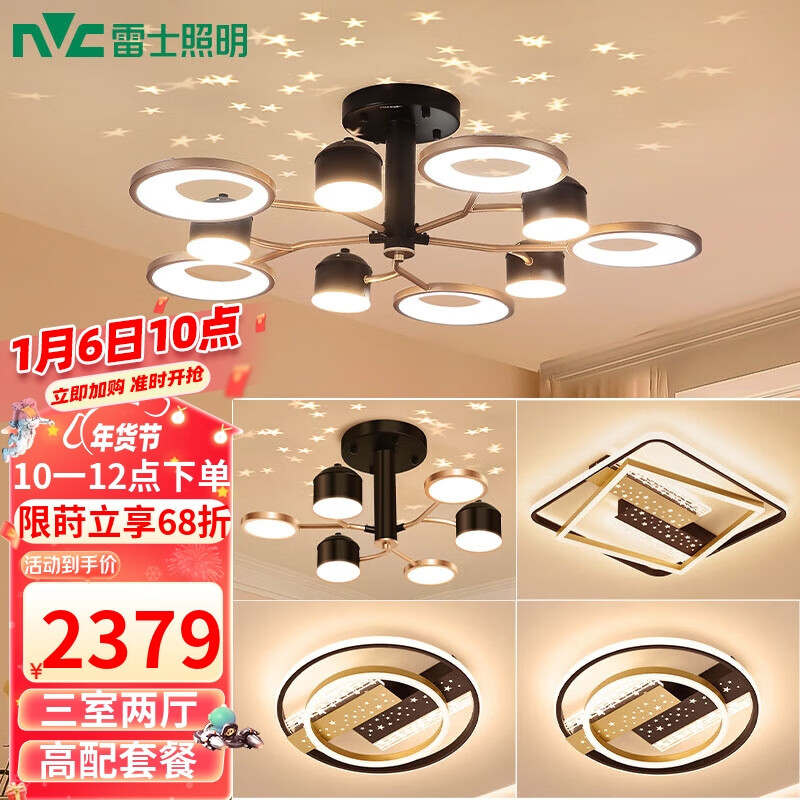 雷士(NVC)北欧简约客厅吊灯星空投影现代灯饰三室两厅升级套餐WHXD80Z/F-03价格:3498.00元!