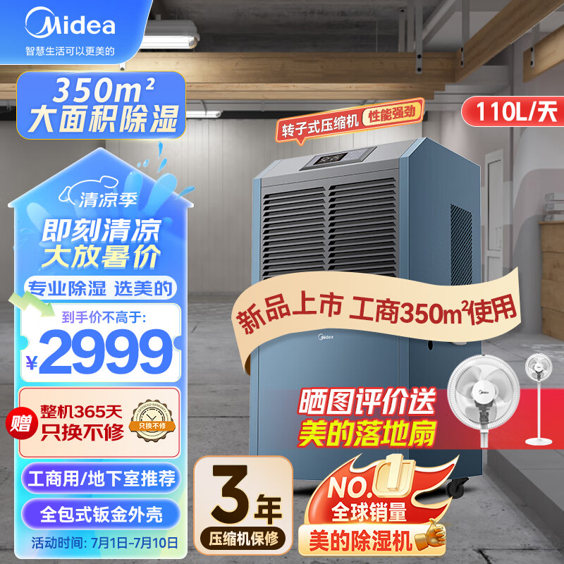 美的(Midea)工业除湿机/抽湿机 150-350平方米 别墅地下室工业商用仓库车间大功率除湿器CF138BD/N1-GY价格:2999.00元!
