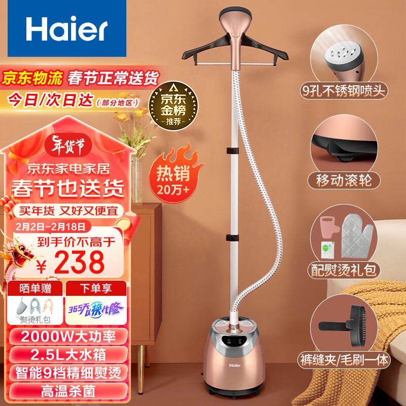 海尔(Haier)挂烫机家用2.5L大功率熨烫机手持立式蒸汽电烫斗衣物护理机服装店高温杀菌烫衣机电熨斗HGS-2510B价格:258.00元!