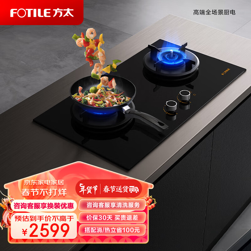 方太燃气灶(天然气)家用台嵌两用灶具 防干烧 换装不改孔 可指定烟灶联动 5.2kW*大火力 01-THK21B价格:2599.00元!