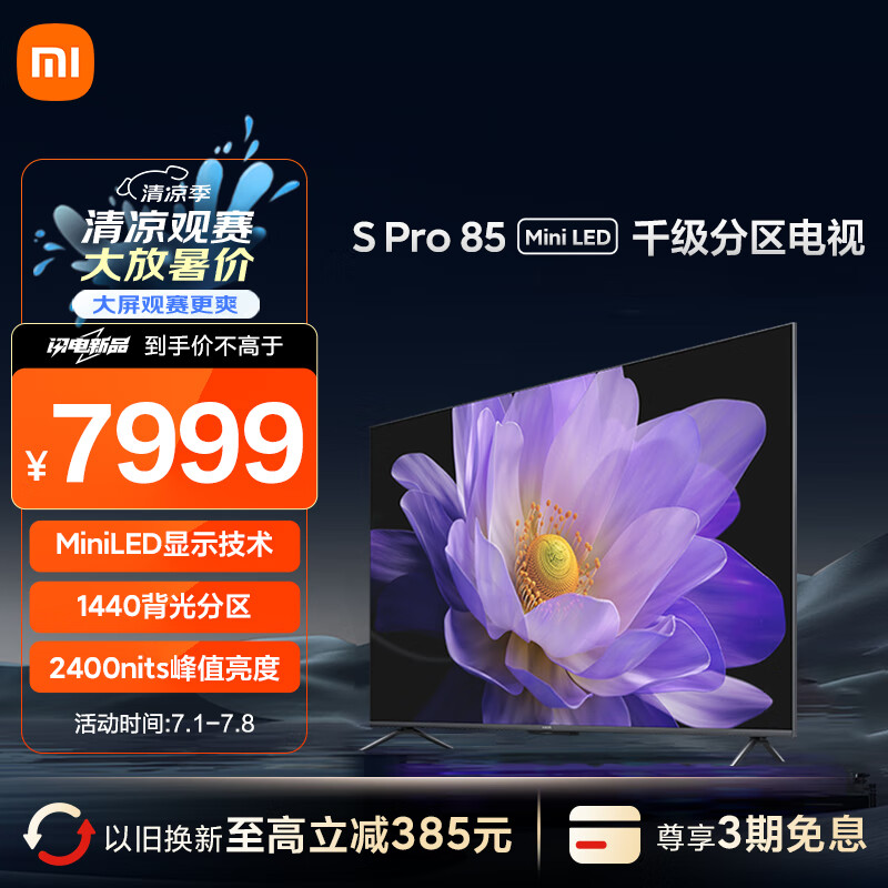 小米电视 S Pro Mini LED 85英寸 2400nits 1440分区 4GB+64GB 澎湃OS系统 欧洲杯电视机L85MA-SM价格:7999.00元!