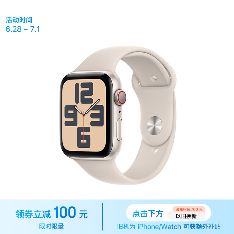 Apple/苹果 Watch SE 2023款智能手表GPS+蜂窝款44毫米星光色铝金属表壳星光色运动型表带M/L MRGY3CH/A价格:2599.00元!