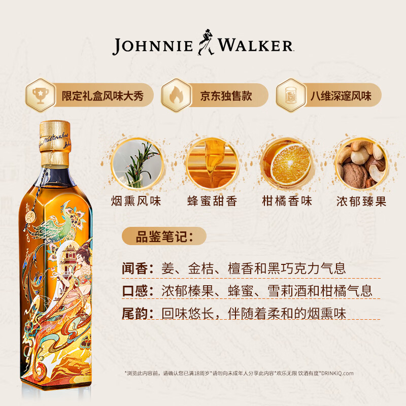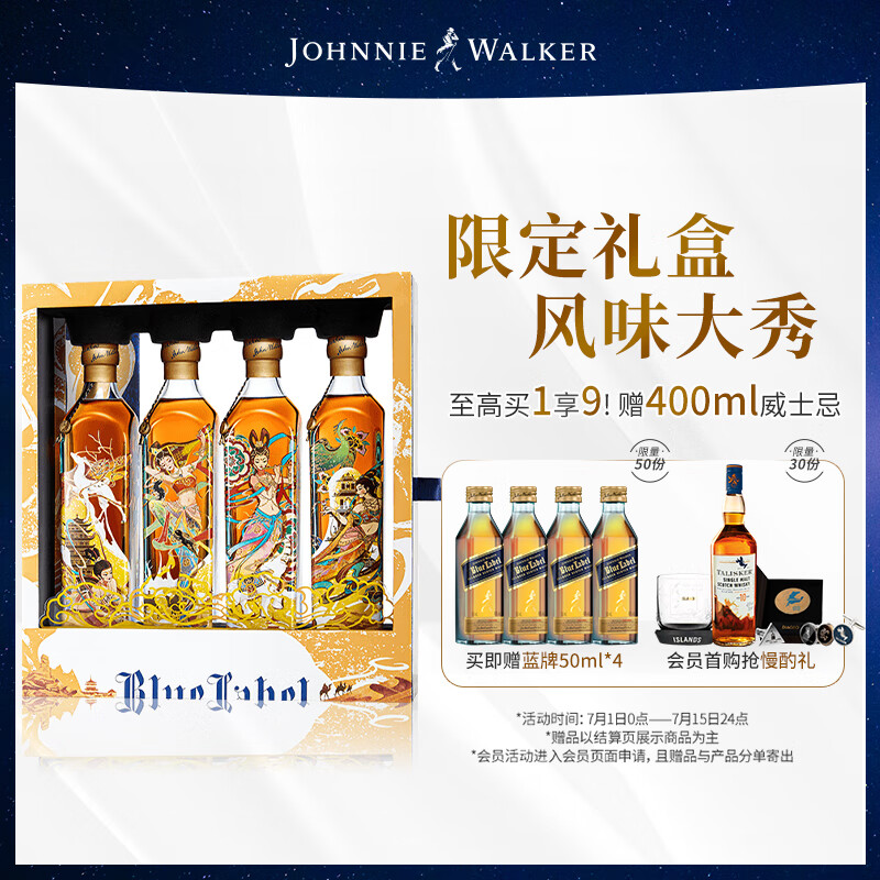 尊尼获加(JOHNNIE WALKER)蓝方蓝牌 定制礼盒 敦煌飞天系列 调和威士忌500ml*4价格:3196.00元!