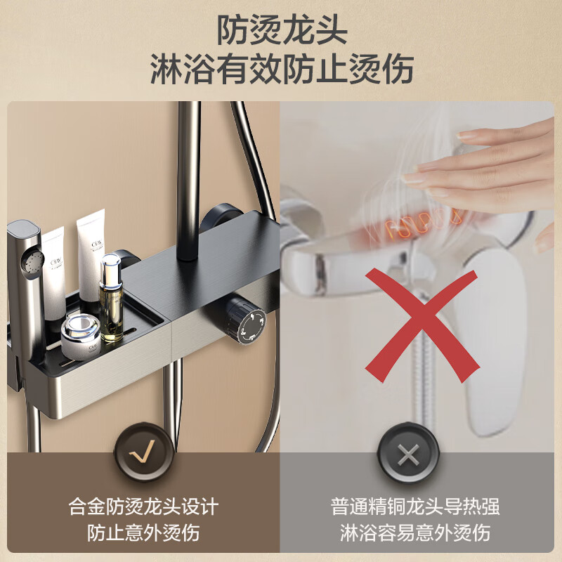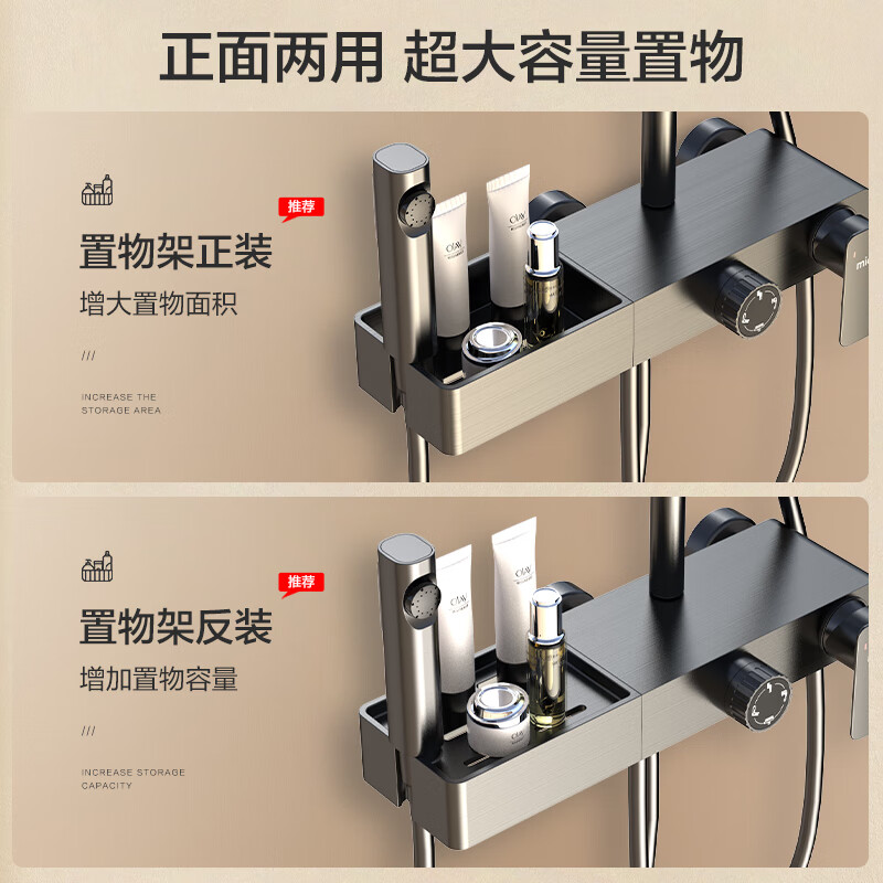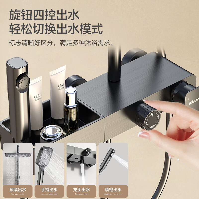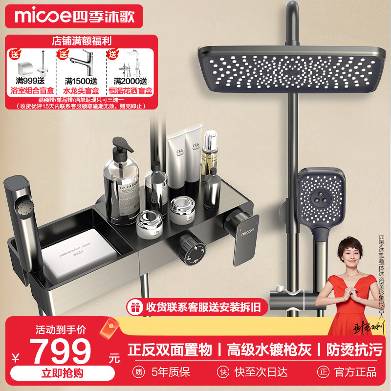四季沐歌(MICOE)枪灰色淋浴花洒全套大置物平台增压花洒喷头卫浴淋浴器四功能套装价格:1199.00元!