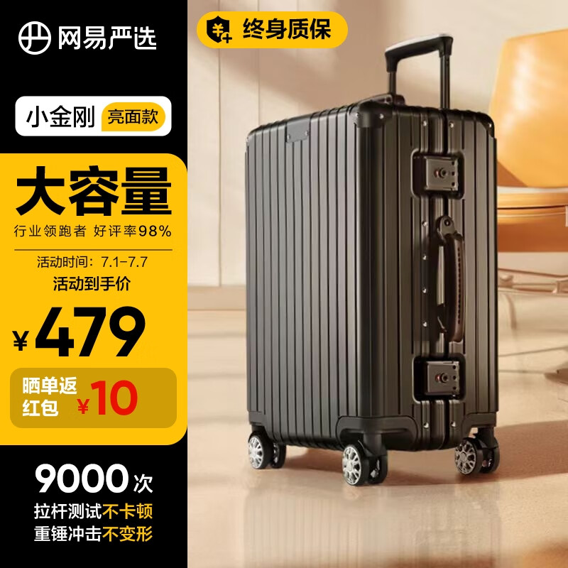 网易严选大容量铝镁框小金刚行李箱拉杆箱升级款26英寸 干湿分离 经典黑价格:509.00元!