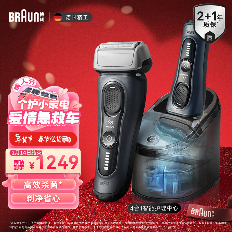 博朗(BRAUN)旗舰8系Pro清洁款电动剃须刀整机德国进口往复式剃须刀刮胡刀生日礼物 男情人节礼物送男友价格:1249.00元!