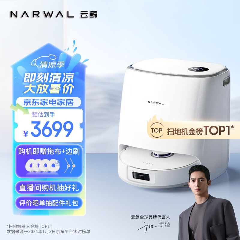 云鲸扫地机器人J4 扫拖洗烘一体自动清洗集尘全自动 洗地机洗拖一体 吸尘器拖地机擦地机器人 水箱版价格:3699.00元!