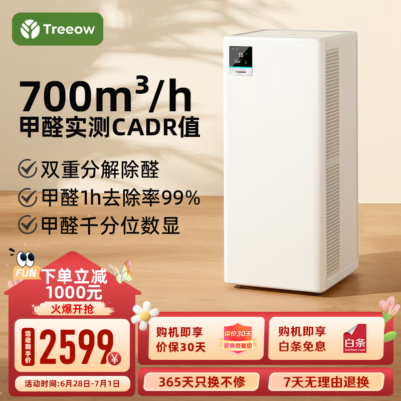 树新风空气净化器 除甲醛异味雾霾除菌除过敏认证 家用大空间 净化 T2价格:3599.00元!
