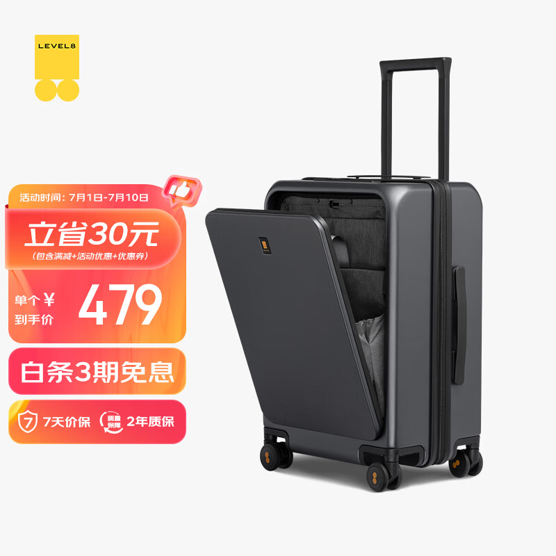 地平线8号(LEVEL8)行李箱旅行拉杆箱20英寸男女商务登机箱前开盖万向轮密码箱灰色价格:509.00元!