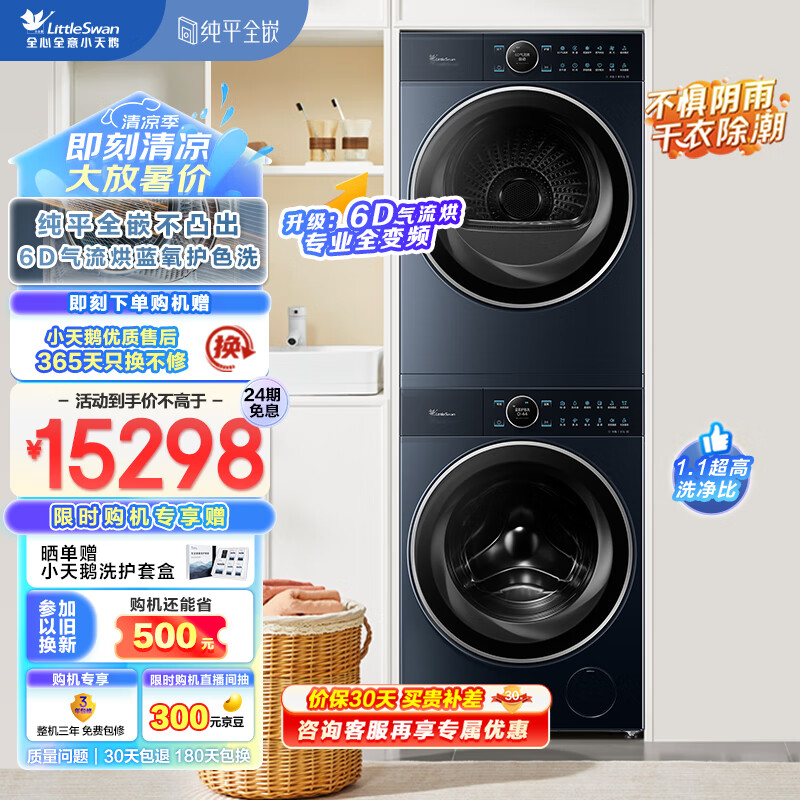 小天鹅(LittleSwan)洗烘套装 10KG滚筒洗衣机全自动+热泵烘干机家用 纯平全嵌 本色蓝氧 全变频 TG100MS97ILZ+97价格:15298.00元!